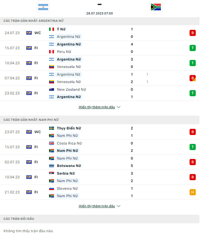 Phong độ và thống kê đối đầu Nữ Argentina vs Nữ Nam Phi
