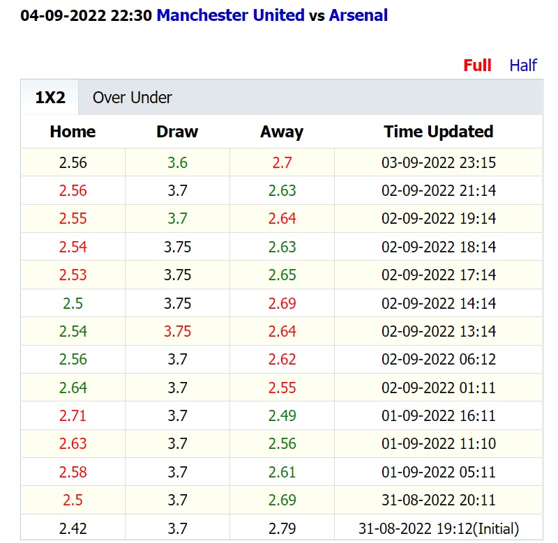 Arsenal có một nhiệm vụ khó khăn để duy trì sự khởi đầu hoàn hảo cho mùa giải Premier League khi họ đụng độ Manchester United vào Chủ nhật. Pháo thủ đã thắng tất cả năm trận đấu đỉnh cao của họ trước cuộc gặp gỡ tại Old Trafford. Và tất nhiên cả 5 trận đấu đó, Pháo thủ đều nhận được ưu thế sau khi tiến đến phòng thay đồ. Điều này hướng đến kèo ăn cho Arsenal ở phần đầu trận đấu khá cao.